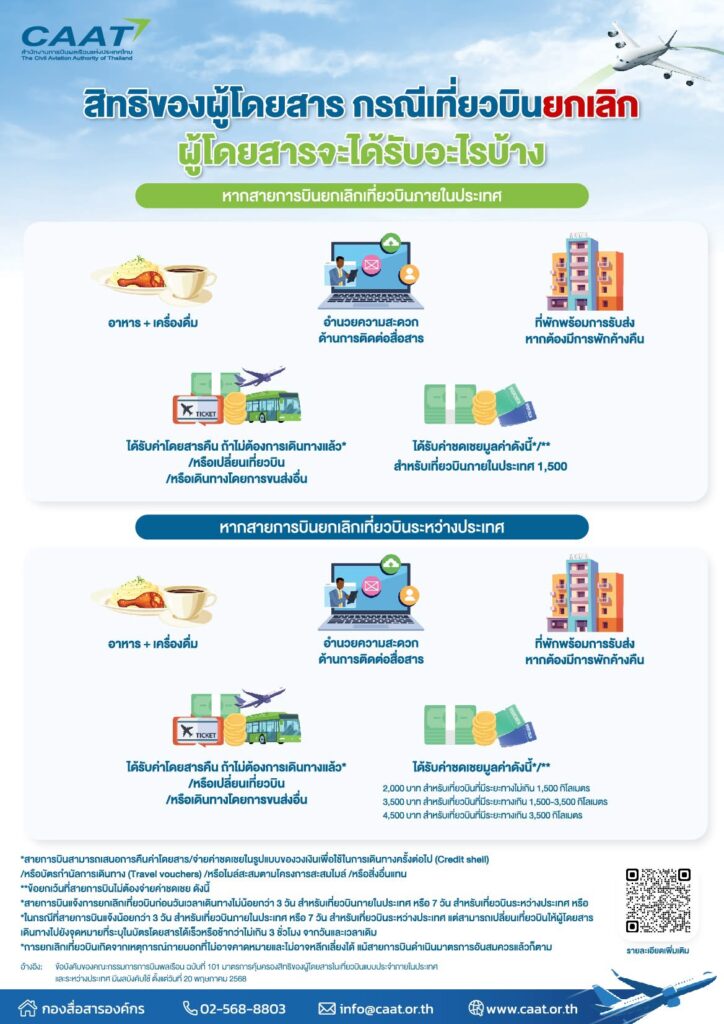 จะเร่งสร้างความเข้าใจให้แก่สายการบินและผู้โดยสารอย่างทั่วถึง เพื่อให้การปฏิบัติตามข้อบังคับเป็นไปอย่างมีประสิทธิภาพ และเกิดประโยชน์สูงสุดแก่ผู้ใช้บริการทุกคน ทั้งนี้ สามารถศึกษารายละเอียดเพิ่มเติมเกี่ยวกับคุ้มครองสิทธิผู้โดยสารได้ที่ https://www.caat.or.th/th/archives/97266