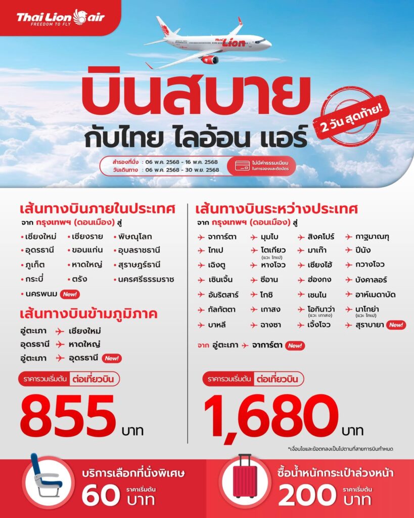 ✈️Domestic Routes, All-in fare from 855 THB/One-way